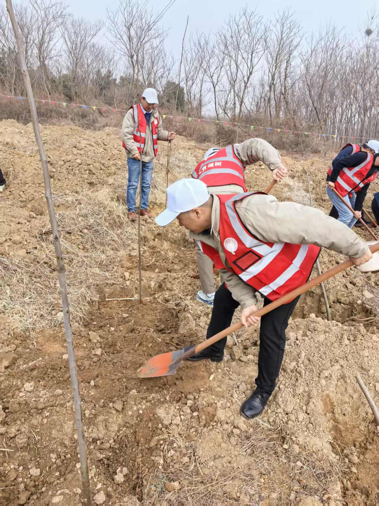3月12日植樹節(jié)當(dāng)天,工會(huì)充分發(fā)揮引領(lǐng)作用,組織員工代表前往旺山開展義務(wù)植樹活動(dòng)。植樹現(xiàn)場(chǎng),大家揮鍬鏟土、扶苗填坑、提水澆灌,分工協(xié)作,干勁十足。一株株新栽的樹苗迎風(fēng)挺立,為初春的大地增添勃勃生機(jī)。