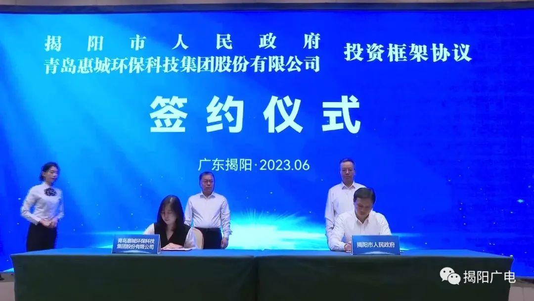 6月18日,揭陽(yáng)市人民政府與青島惠城環(huán)保科技集團(tuán)股份有限公司在揭陽(yáng)市區(qū)簽署投資框架協(xié)議。[ 查看更多 ]